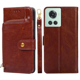 Για OnePlus Ace/10R φερμουάρ τσάντα δέρμα τηλέφωνο υπόθεση (καφέ)