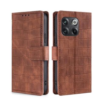 For OnePlus 10T Skin Feel Crocodile Magnetic Clasp Leather Phone Case(Brown)