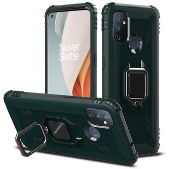 Για OnePlus Nord N100 Carbon Fiber Προστατευτική θήκη με 360 μοίρες περιστρεφόμενο δαχτυλίδι κάτοχος (πράσινο)