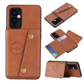 Για OnePlus 9 Διπλή πόρπη PU + TPU Shockproof μαγνητική προστατευτική θήκη με υποδοχή κάρτας & κάτοχος (καφέ)