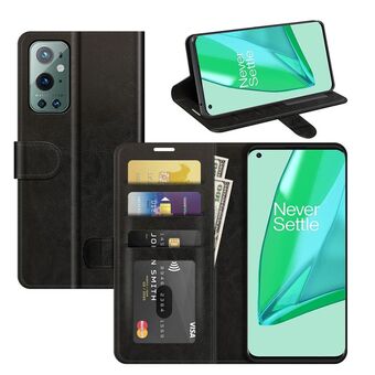 Για OnePlus 9 Pro R64 υφή ενιαία οριζόντια Flip προστατευτική θήκη με υποδοχή & υποδοχές καρτών & πορτοφόλι & πλαίσιο φωτογραφιών (μαύρο)