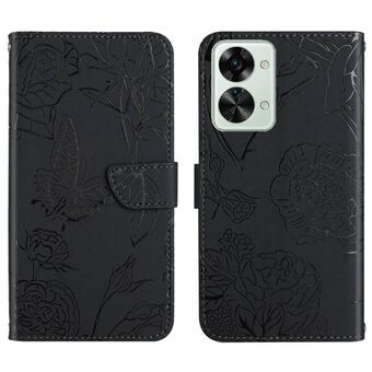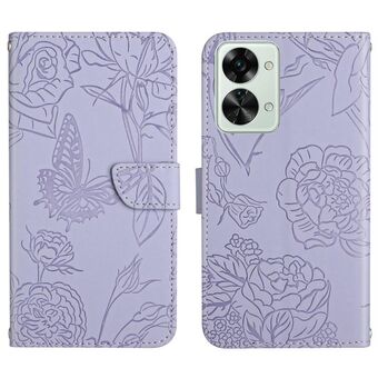 Θήκη τηλεφώνου από δέρμα με ανάγλυφο σχέδιο πεταλούδας και παιώνιας για OnePlus Nord 2T 5G (Κόκκινο)