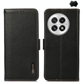 For OnePlus 13 KHAZNEH Side-Magnetic Litchi Genuine Leather RFID Phone Case(Black)