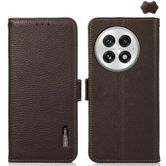 For OnePlus 13 KHAZNEH Side-Magnetic Litchi Genuine Leather RFID Phone Case(Brown)