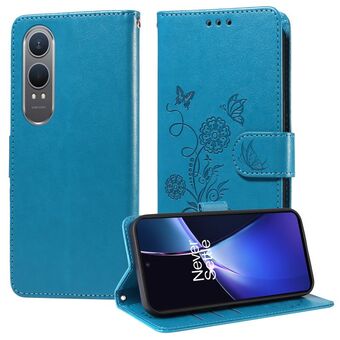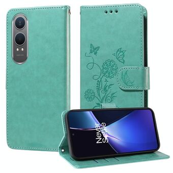 Θήκη τηλεφώνου από δέρμα με ανάγλυφα σχέδια πεταλούδας και λουλουδιών για OnePlus Nord CE 4 Lite (Μωβ)