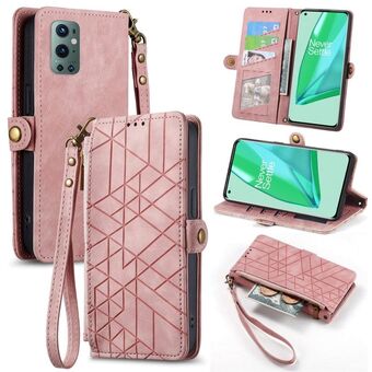 Για OnePlus 9 Pro γεωμετρική φερμουάρ πορτοφόλι πλευρά πόρπη δερμάτινη θήκη τηλεφώνου (ροζ)