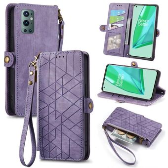 Για OnePlus 9 Pro γεωμετρική φερμουάρ πορτοφόλι πλευρά πόρπη δερμάτινη θήκη τηλεφώνου (μοβ)