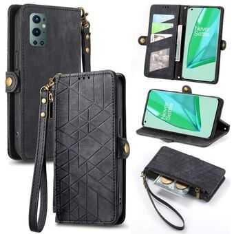 Για OnePlus 9 Pro γεωμετρική φερμουάρ πορτοφόλι πλευρά πόρπη δερμάτινη θήκη τηλεφώνου (μαύρο)