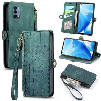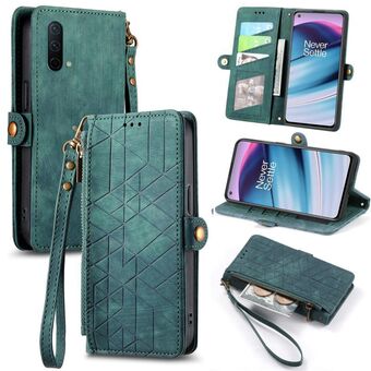 Για OnePlus Nord CE 5G γεωμετρική φερμουάρ πορτοφόλι πλευρά πόρπη δερμάτινη θήκη τηλεφώνου (πράσινο)