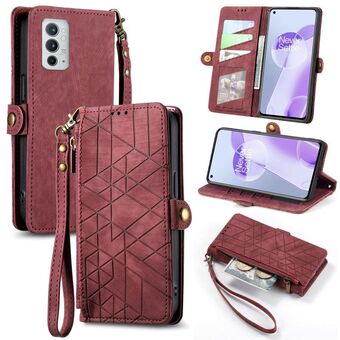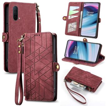 Για OnePlus Nord CE 5G γεωμετρική φερμουάρ πορτοφόλι πλευρά πόρπη δερμάτινη θήκη τηλεφώνου (κόκκινο)