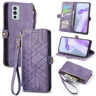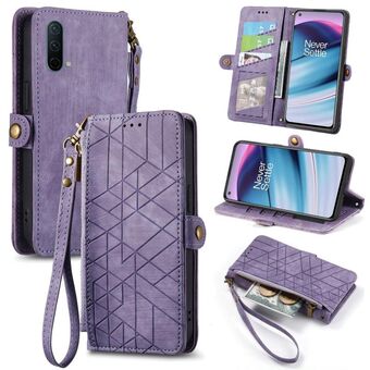 Για OnePlus Nord CE 5G γεωμετρική φερμουάρ πορτοφόλι πλευρά πόρπη δερμάτινη θήκη τηλεφώνου (μοβ)