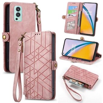 Για OnePlus Nord 2 5G γεωμετρική φερμουάρ πορτοφόλι πλευρά πόρπη δερμάτινη θήκη τηλεφώνου (ροζ)