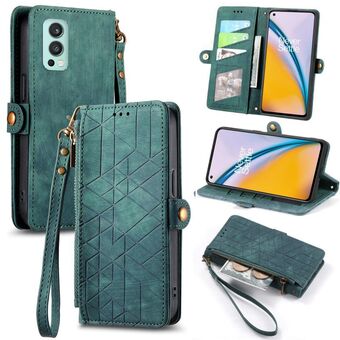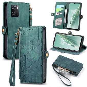 Για OnePlus N20 5G γεωμετρική φερμουάρ πορτοφόλι πλευρά πόρπη δερμάτινη θήκη τηλεφώνου (πράσινο)