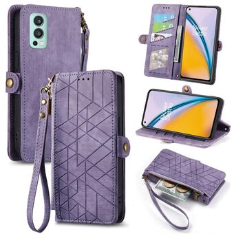 Για OnePlus Nord 2 5G γεωμετρική φερμουάρ πορτοφόλι πλευρά πόρπη δερμάτινη θήκη τηλεφώνου (μοβ)