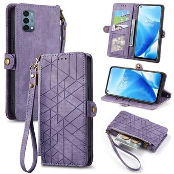 Για OnePlus Nord N200 5G γεωμετρική φερμουάρ πορτοφόλι πλευρά πόρπη δερμάτινη θήκη τηλεφώνου (μοβ)