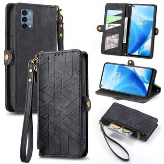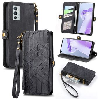 Για OnePlus Nord CE 5G γεωμετρική φερμουάρ πορτοφόλι πλευρά πόρπη δερμάτινη θήκη τηλεφώνου (μαύρο)