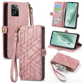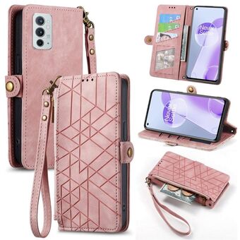 Για OnePlus Nord CE 5G γεωμετρική φερμουάρ πορτοφόλι πλευρά πόρπη δερμάτινη θήκη τηλεφώνου (ροζ)