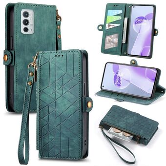 Για OnePlus 9 Pro γεωμετρική φερμουάρ πορτοφόλι πλευρά πόρπη δερμάτινη θήκη τηλεφώνου (πράσινο)