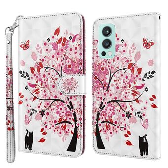 Θήκη τηλεφώνου για OnePlus Nord 2 5G, TPU + Δερμάτινη PU με τρισδιάστατο σχέδιο (Γάτα κάτω από το δέντρο)