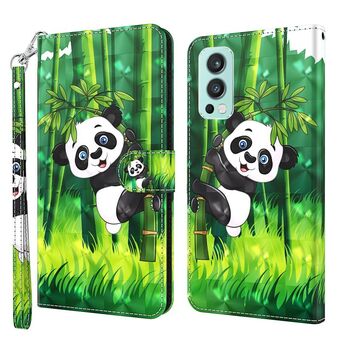 Θήκη τηλεφώνου για OnePlus Nord 2 5G, TPU + Δερμάτινη PU με τρισδιάστατο σχέδιο (Αναρριχώμενο Πάντα σε Μπαμπού)
