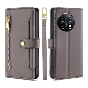 Για OnePlus 11 φερμουάρ τσάντα δερμάτινη θήκη τηλεφώνου (καφέ)