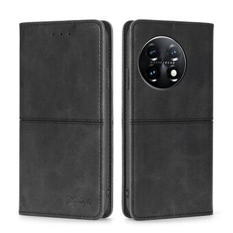 Για OnePlus 11 δέρμα αισθάνονται μαγνητική πόρπη δερμάτινη θήκη τηλεφώνου (Μαύρο)