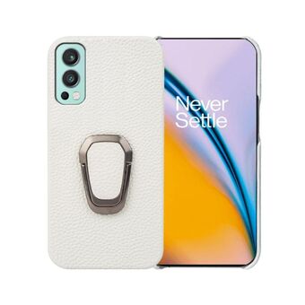 Για OnePlus Nord 2 5G δαχτυλίδι κάτοχος Litchi υφή γνήσιο δέρμα τηλέφωνο υπόθεση (λευκό)