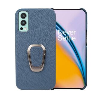 Για OnePlus Nord 2 5G δαχτυλίδι κάτοχος Litchi υφή γνήσιο δέρμα τηλέφωνο υπόθεση (μπλε)