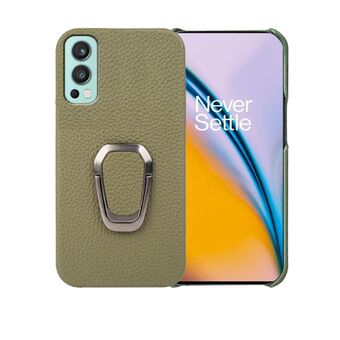 Για OnePlus Nord 2 5G δαχτυλίδι κάτοχος Litchi υφή γνήσιο δέρμα τηλέφωνο υπόθεση (πράσινο)