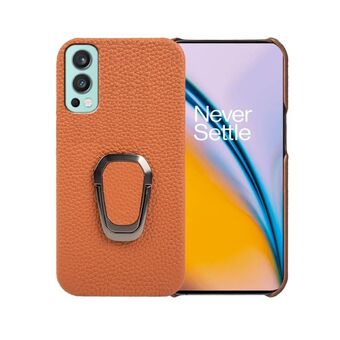 Για OnePlus Nord 2 5G δαχτυλίδι κάτοχος Litchi υφή γνήσιο δέρμα τηλέφωνο υπόθεση (καφέ)