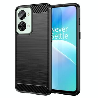 Για OnePlus Nord 2T βουρτσισμένη υφή Carbon Fiber TPU τηλέφωνο υπόθεση (μαύρο)