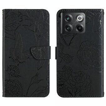 Για OnePlus 10T / Ace Pro HT03 δέρμα αίσθηση πεταλούδα ανάγλυφο Flip υπόθεση τηλεφώνου δέρμα (μαύρο)