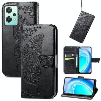 Για OnePlus Nord CE 2 Lite 5G πεταλούδα αγάπη λουλούδι ανάγλυφο ανάγλυφο Flip δέρμα τηλέφωνο υπόθεση (μαύρο)