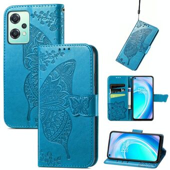 Για OnePlus Nord CE 2 Lite 5G πεταλούδα αγάπη λουλούδι ανάγλυφο ανάγλυφο Flip δέρμα τηλέφωνο υπόθεση (μπλε)