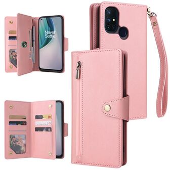 Για OnePlus Nord N10 5G Rivet πόρπη 9 κάρτες τρεις φορές δερμάτινη θήκη τηλεφώνου (Rose Gold)