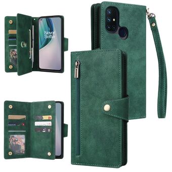 Για OnePlus Nord N10 5G Rivet πόρπη 9 κάρτες τρεις φορές δερμάτινη θήκη τηλεφώνου (πράσινο)