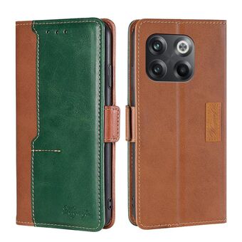 Για OnePlus 10T αντίθεση χρώμα πλευρά πόρπη δερμάτινη θήκη τηλεφώνου υπόθεση (ανοιχτό καφέ + πράσινο)