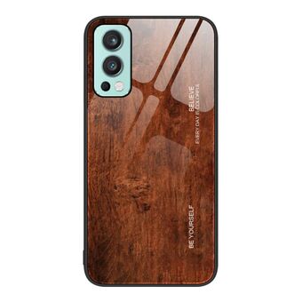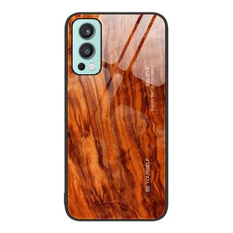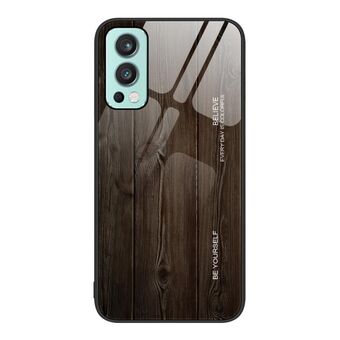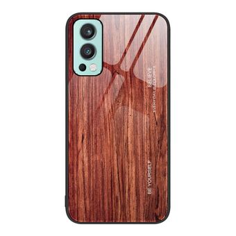 Για OnePlus Nord 2 5G Wood Grain Glass Προστατευτική θήκη (σκούρο καφέ)