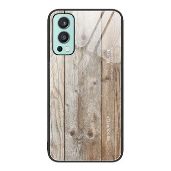 Για OnePlus Nord 2 5G Wood Grain Glass Προστατευτική θήκη (ανοιχτό καφέ)