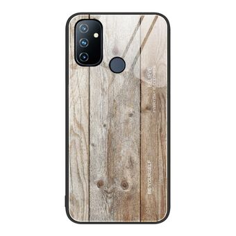 Για OnePlus Nord N100 Wood Grain Glass Προστατευτική θήκη (Μαύρο)