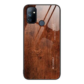 Για OnePlus Nord N100 Wood Grain γυαλί προστατευτική θήκη (σκούρο καφέ)
