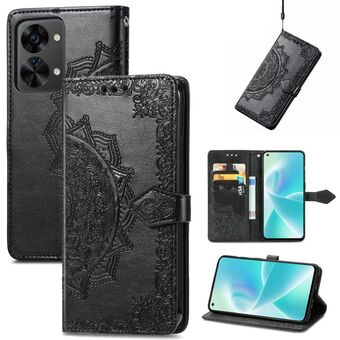 Για OnePlus Nord 2T Mandala λουλούδι ανάγλυφο οριζόντια Flip δέρμα τηλέφωνο υπόθεση (μαύρο)