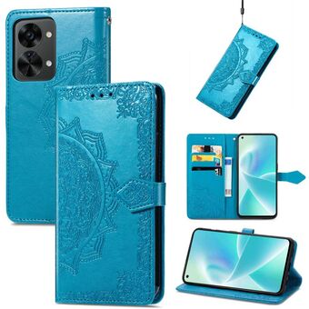 Για OnePlus Nord 2T Mandala λουλούδι ανάγλυφο οριζόντια Flip δέρμα τηλέφωνο υπόθεση (μπλε)