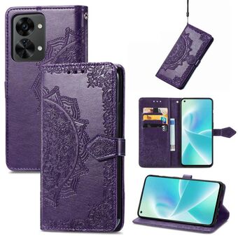 Για OnePlus Nord 2T Mandala λουλούδι ανάγλυφο οριζόντια Flip δέρμα τηλέφωνο υπόθεση (μωβ)