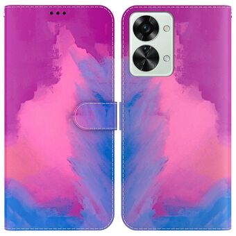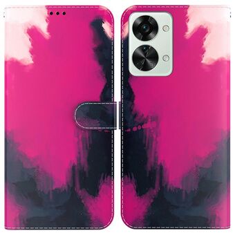 Για OnePlus Nord 2T νερομπογιά μοτίβο οριζόντια Flip δέρμα τηλέφωνο υπόθεση (μοβ κόκκινο)
