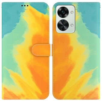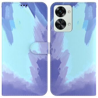 Για OnePlus Nord 2T νερομπογιά μοτίβο οριζόντια Flip δέρμα τηλέφωνο υπόθεση (Cyan Green)