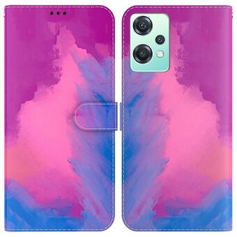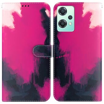 Για OnePlus Nord CE 2 Lite 5G νερομπογιά μοτίβο οριζόντια Flip δέρμα τηλέφωνο υπόθεση (μοβ κόκκινο)