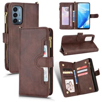 Για OnePlus Nord N200 5G Litchi υφή φερμουάρ δέρμα τηλέφωνο υπόθεση (καφέ)