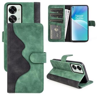 Για OnePlus Nord CE 2 5G αντίθεση χρώματος πλευρά πόρπη δερμάτινη θήκη τηλεφώνου (ανοιχτό καφέ + πράσινο)