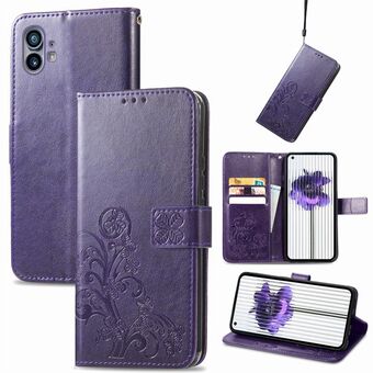 Για τίποτα τηλέφωνο 1 τετράφυλλο κούμπωμα ανάγλυφο αγκράφα δερμάτινη θήκη τηλεφώνου (μωβ)